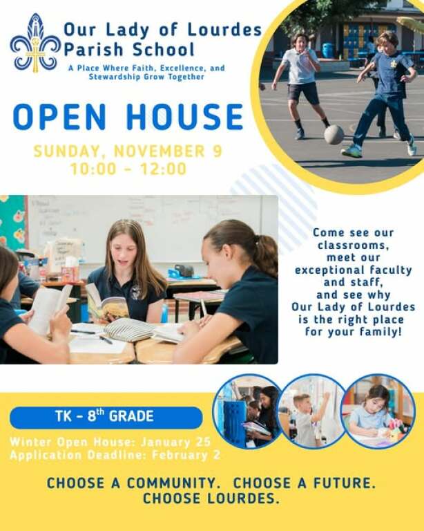 Our Lady of Lourdes School Open House 10am-12pm Sun. Nov. 9